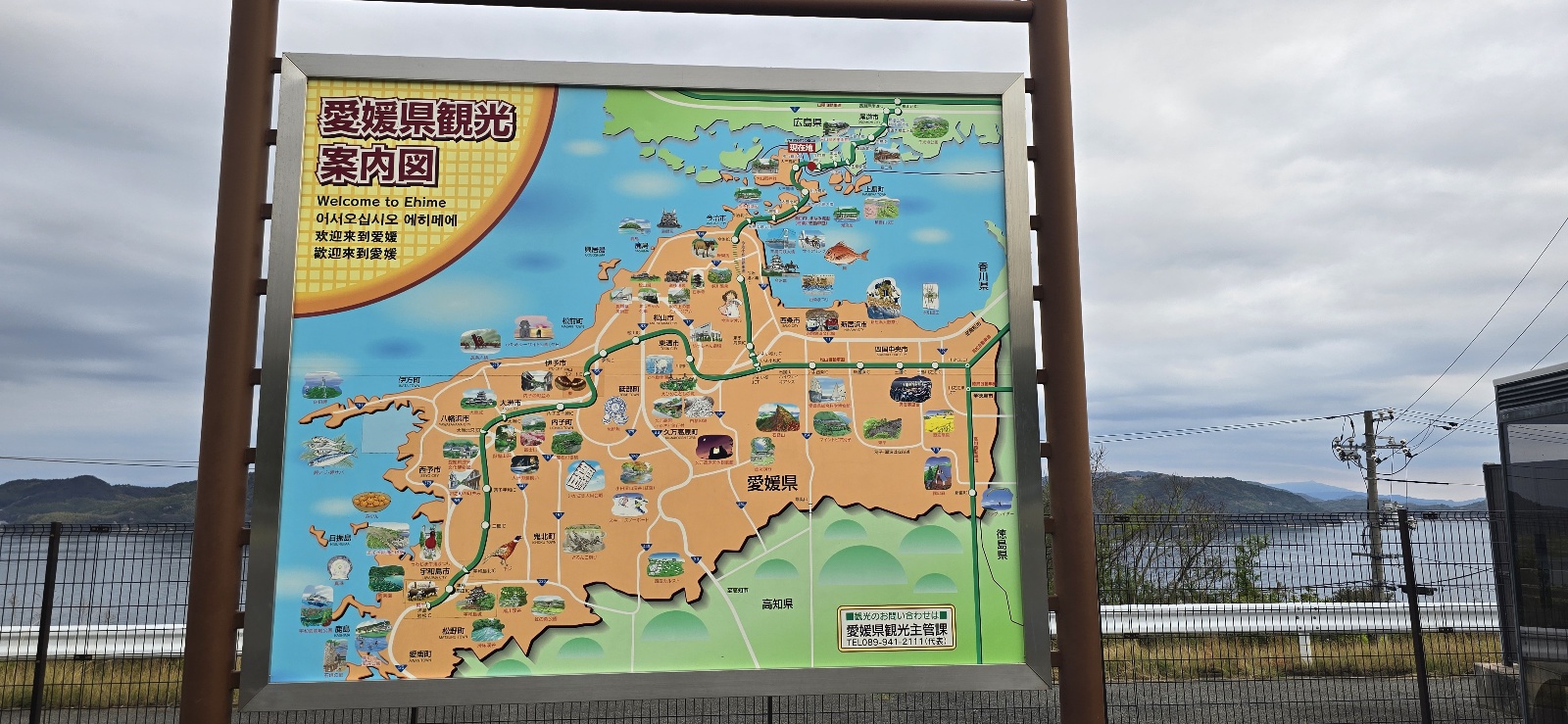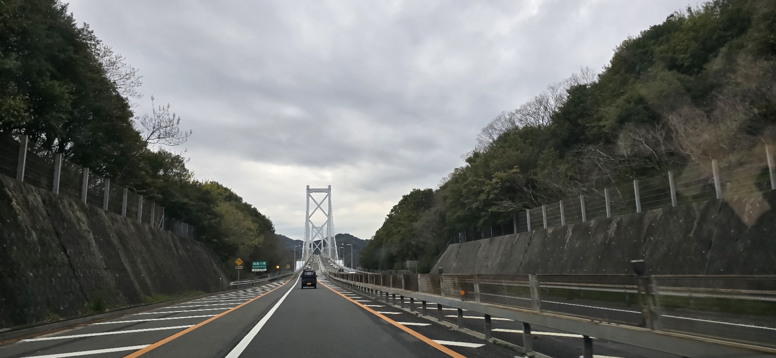 야와타하마항에서 내려 E56 마츠야마 고속도로에 진입하면 시코쿠의 도로 환경을 경험할 수 있다.