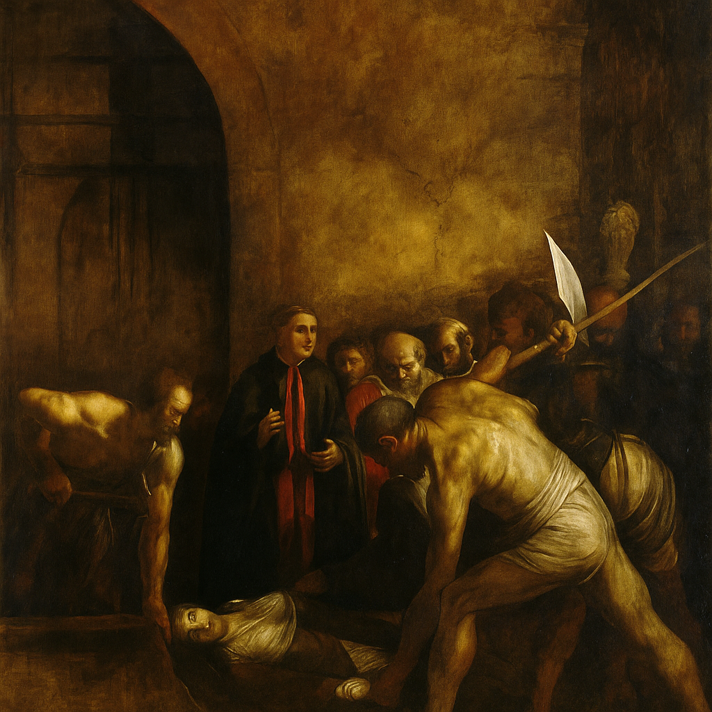 성녀 루치아가 순교하는 순간을 극적으로 묘사했다.