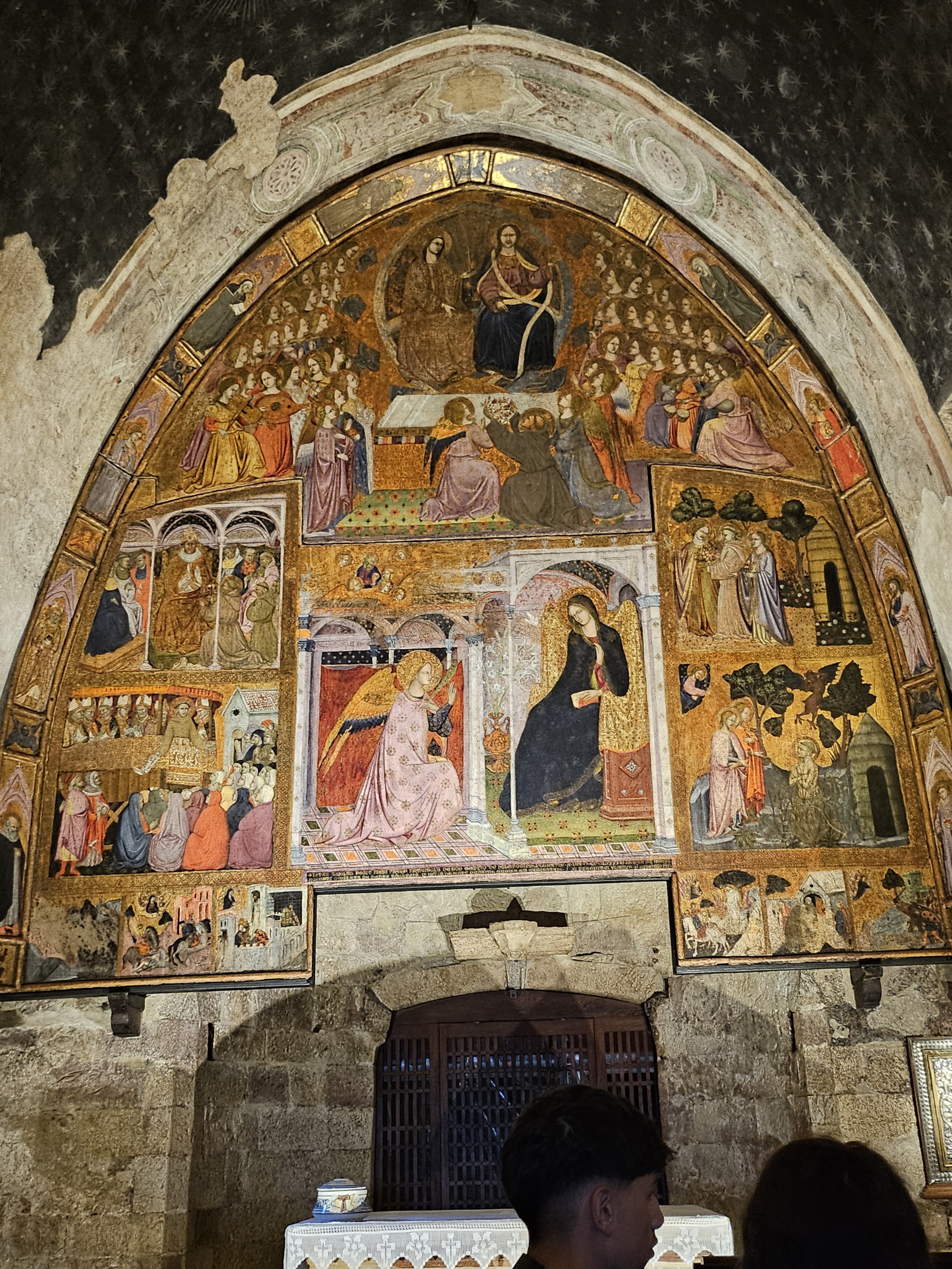 일부 순례객은 내부의 화려한 프레스코화와