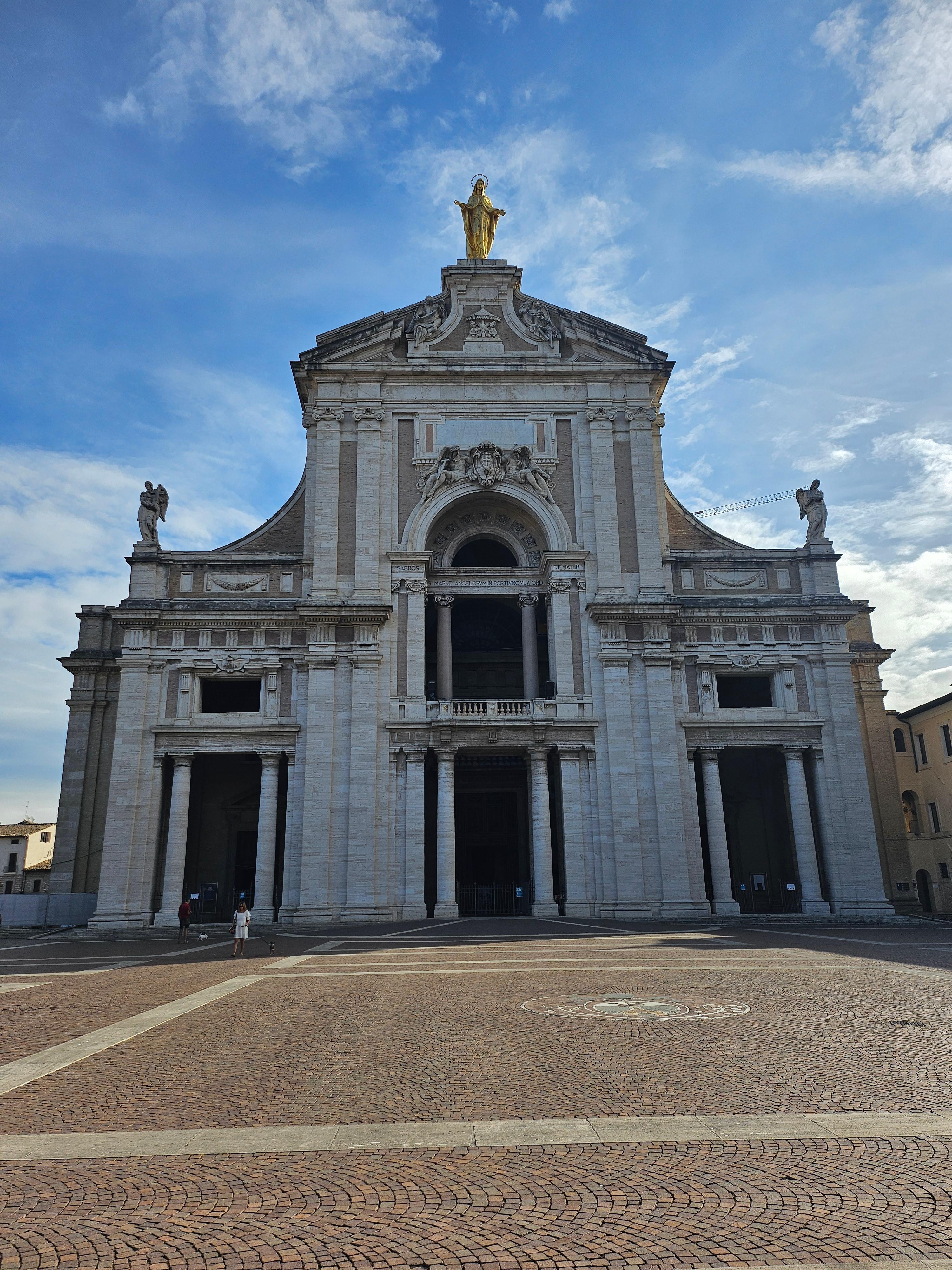 | 관람 포인트 및 예배당 구조 | 성당은 외부에서 볼 때 대리석으로 장식된 거대한 파사드와 돔 형태의 천정이 특징이다. 내부에는 포르치운콜라 예배당이 정중앙에 위치하며, 그 뒤쪽에 트란시토 예배당이 자리한다. 두 예배당 사이에는 순례객이 기도와 묵상을 할 수 있는 회랑 공간이 마련되어 있다. 이른 아침에도 순례객들이 많으며, 일부는 십자가 앞에서 침묵 기도를 드린다. | 입장료: 무료 개방시간: 매일 06:30~12:30 / 14:30~19:30 소요시간: 약 30~45분 |