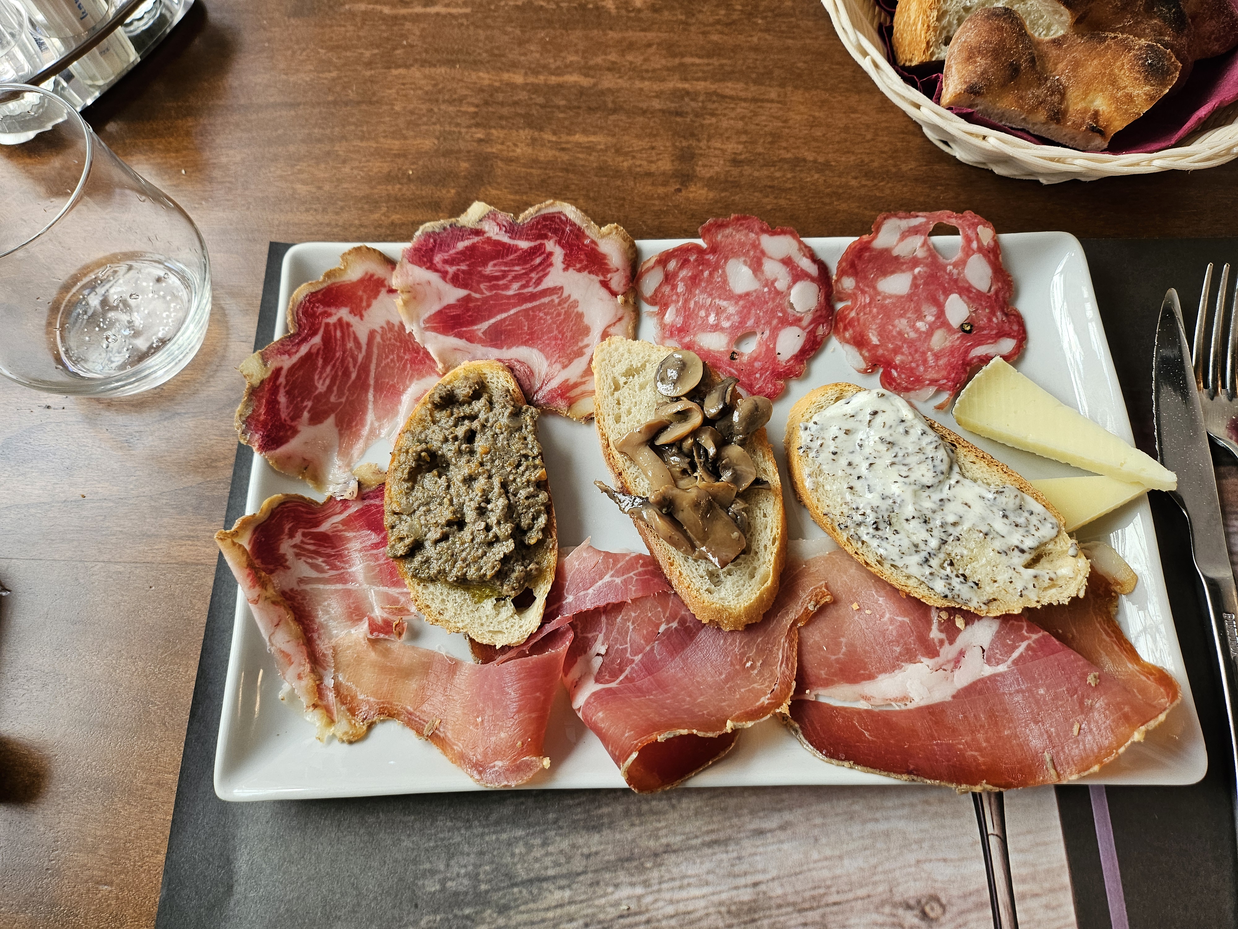 테이블에 오른 에피타이저는 살라미와 바삭한