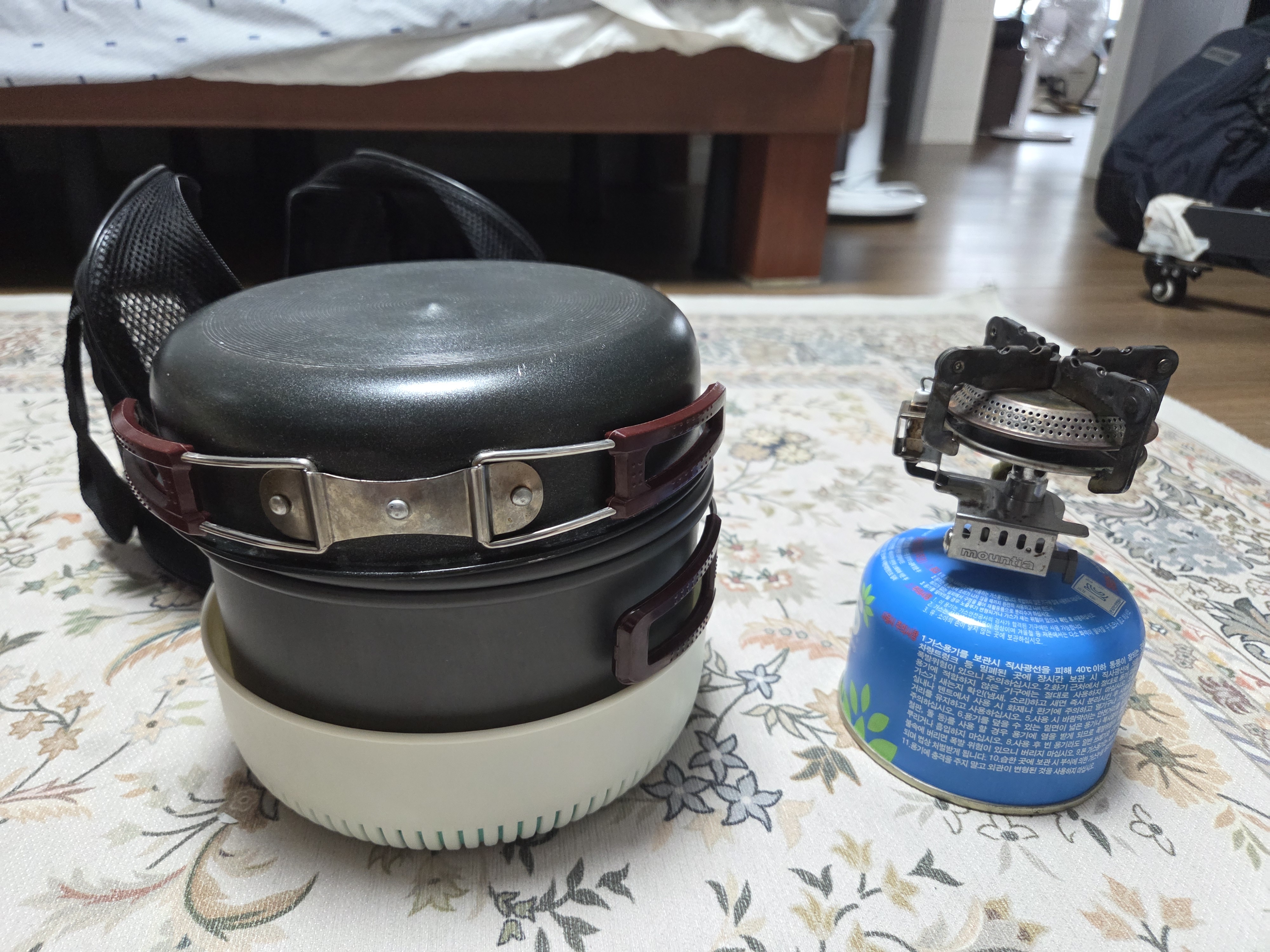 코펠 세트: 냄비, 팬, 뚜껑이 일체형으로 구성된 다목적 조리도구