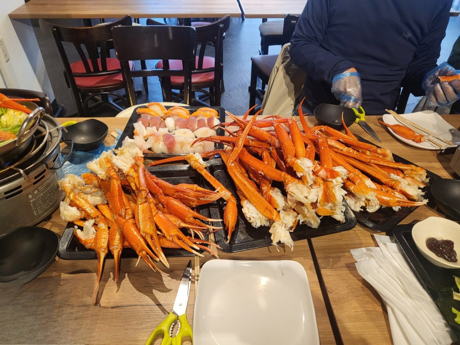 저녁은 홋카이도 여행의 백미라 할 수 있는 게 요리 뷔페였다. 신선한 게를 다양한 조리법으로 즐길 수 있었고,