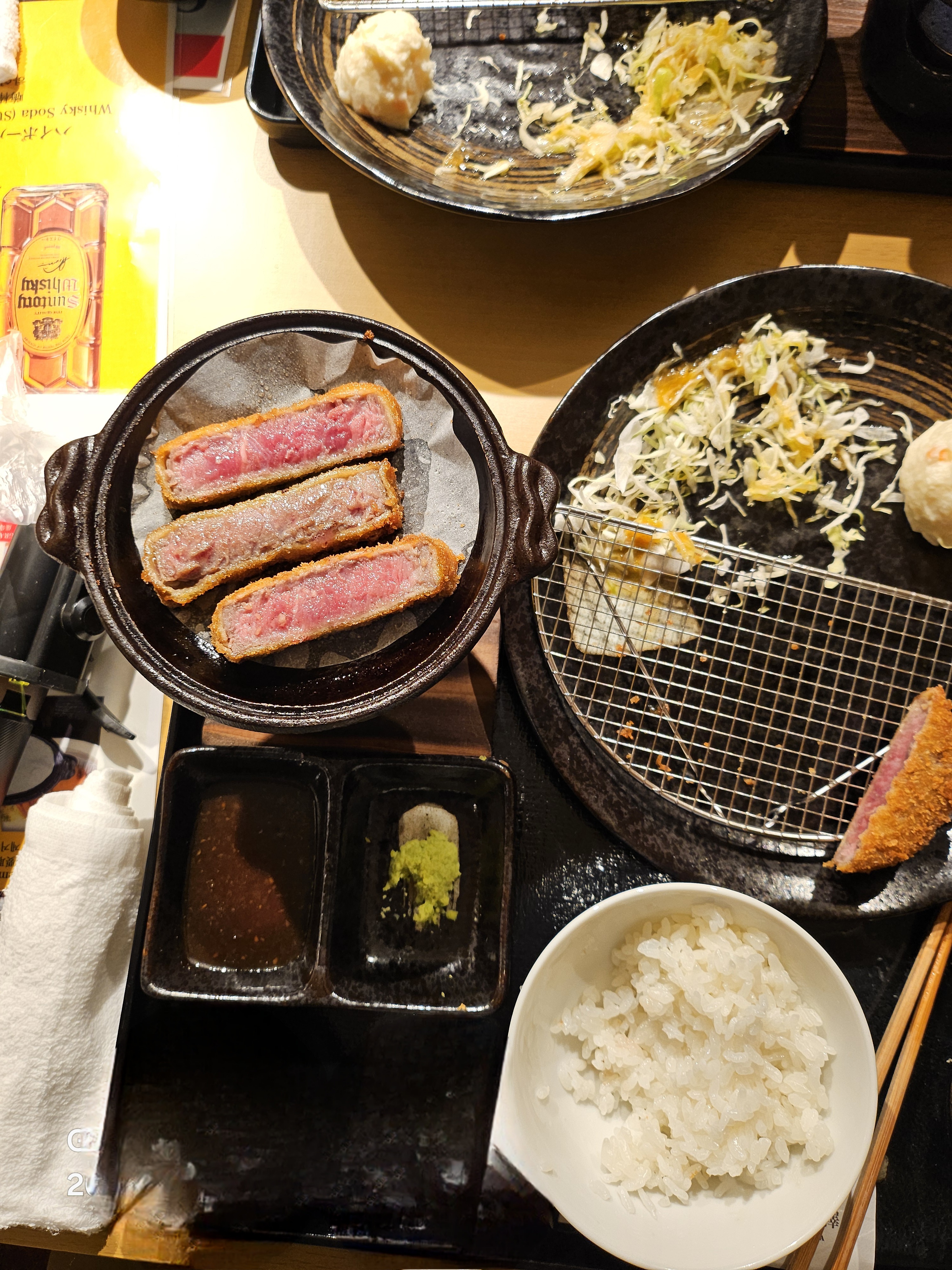 일본식 돈가스와 유사하지만, 고기가 살짝 레어 상태로 제공되고